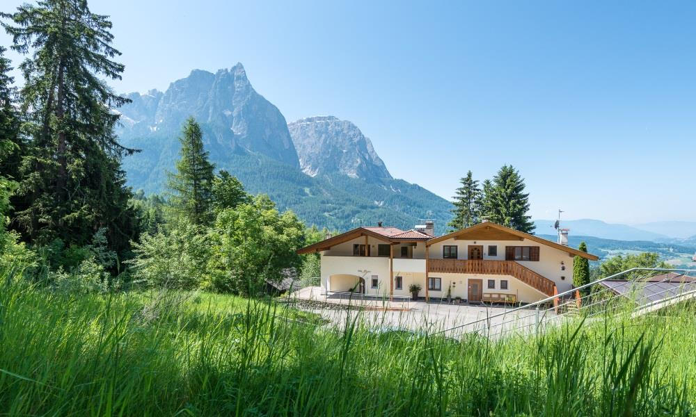 Oberhalb von Seis am Schlern thront die Villa Pircher in beeindruckender Panoramalage. Wenn man Erholung auf dem Balkon oder im großen Garten mit Grillmöglichkeit sucht, liegen der Hausberg Schlern, die Brentagruppe sowie die Amadello-Gruppe im direkten Blickfeld. Nahe des Hauses gibt es eine Bushaltestelle, der Ortskern ist nur einen Kilometer entfernt. Direkt vom Haus aus können tolle Wander- und Biketouren gestartet werden!