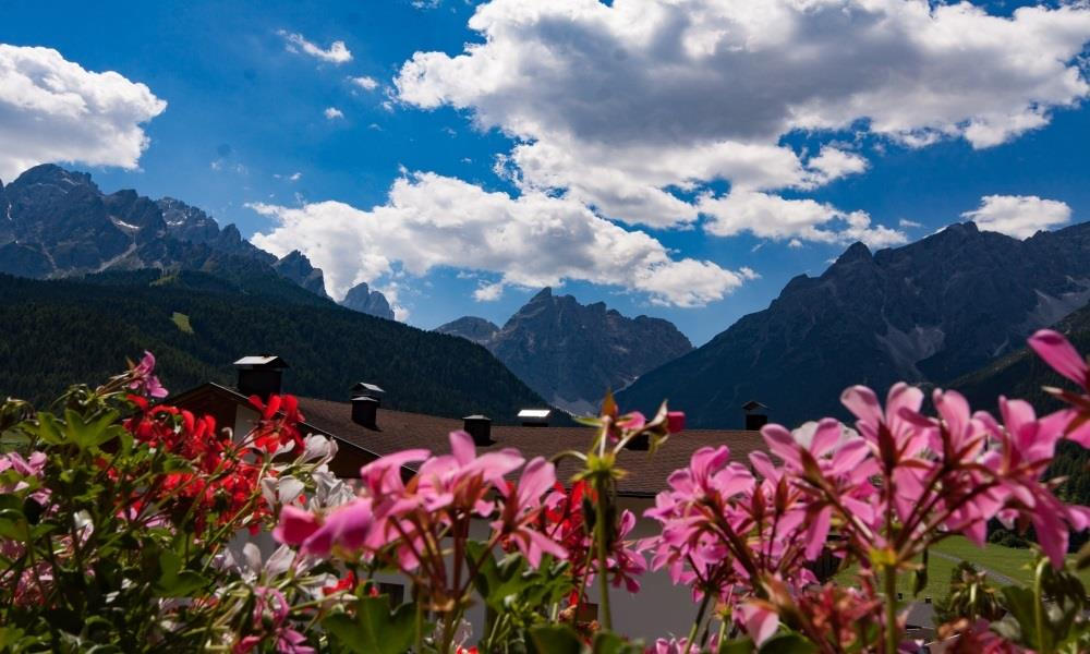 Im Antlitz der drei Zinnen, auf einer kleinen Anhöhe und von absoluter Bergruhe umgeben, da liegt das Haus Stabinger mit seinen Ferienwohnungen. Die Sonne scheint auf die Liegewiese vor dem Haus und wärmt die dort sitzenden Gäste, die die Uhrzeit von der Sextner Sonnenuhr ablesen und in aller Gemütlichkeit grillen.