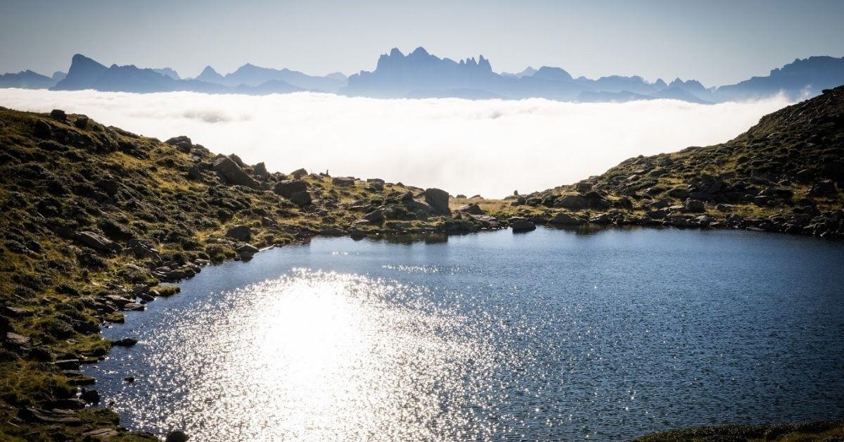 Totensee im Eisacktal befindet sich auf 2.208 m Höhe auf dem zweitgrößten Hochplateau Europas – der Villanderer Alm im Herzen Südtirols. Vom See aus genießt man einen spektakulären Ausblick auf die weitläufige Landschaft dieser Alm und auf die gegenüberliegenden, markanten Felsspitzen und imposanten Bergmassive der Dolomiten: den Lang- und Plattkofel, den Rosengarten und die Sellagruppe. Dieser Ausblick lässt sich besonders gut von den einladenden Holzliegen aus genießen, die auf einer Seite des Sees angebracht sind. Seinen zugegebenermaßen etwas schaurigen Namen verdankt der Bergsee wohl seiner kargen, ertraglosen Umgebung, die in Südtirol auch als „tot“ bezeichnet wird. Diese Umgebung besitzt eine Aura der besonderen Art, mit der der abgeschiedene See seine BesucherInnen in seinen magischen Bann zieht: Der See liegt bereits oberhalb der Baumgrenze und ragt zwischen Felsbrocken in den Ausläufern des dahinter liegenden Berges hervor. Es ist ein Ort, an dem man selbst ganz still wird, an dem man in sich kehrt und plötzlich dem Rauschen des Wassers und dem Zwitschern der Vögel lauscht. Gleichzeitig macht sich ein wohliges Gefühl breit – und auch Dankbarkeit dafür, Zeuge dieses leisen, und doch so imposanten Naturspektakels zu sein.
