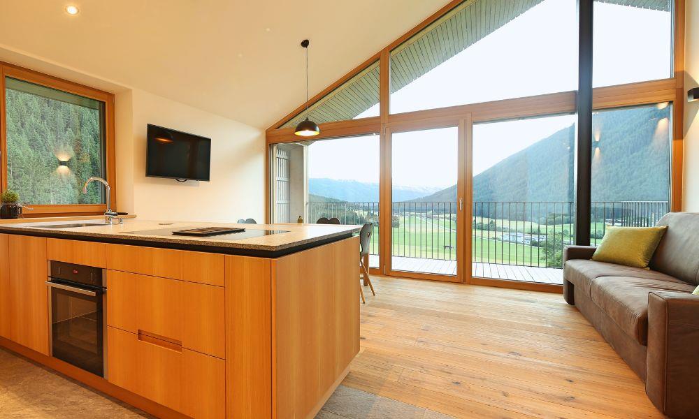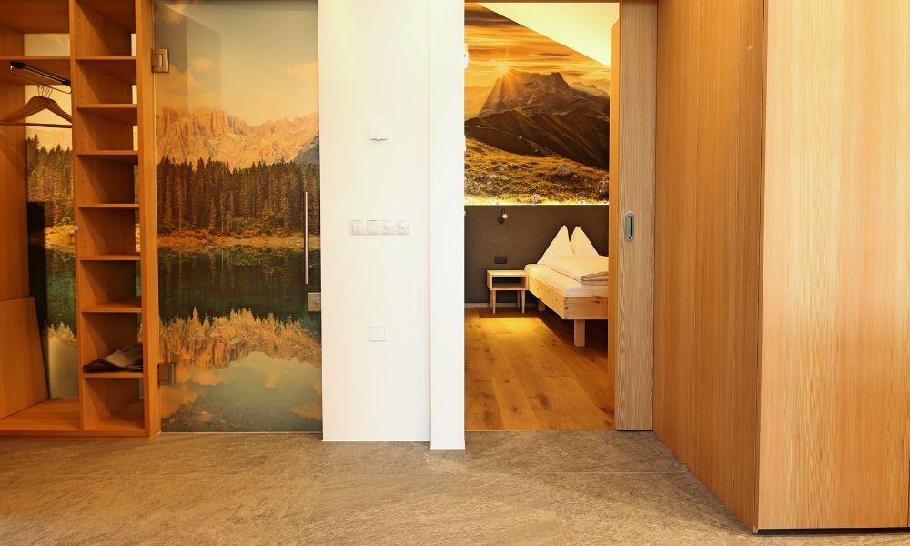 The Sunnig Nature Apartments are located in St. Martin in the Gsieser valley, surrounded by sunny meadows and fields. Out front are a large playground and sunbathing lawn (with barbecue facilities), ensuring a relaxing start to your day. Those wanting a more active holiday can explore the wide range of rustic mountain huts on a leisurely hike (even in winter), enjoy a mountain bike tour or even scale the impressive Dolomite peaks. For more winter fun, the apartments are located directly on a cross-country ski trail. The stylish Sunnig Nature Apartments, with their abundant wood furnishings, also offer holidaymakers breathtaking views across the valley to the peaks of the Prags Dolomites.