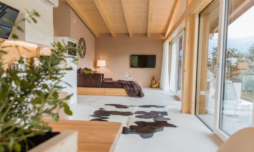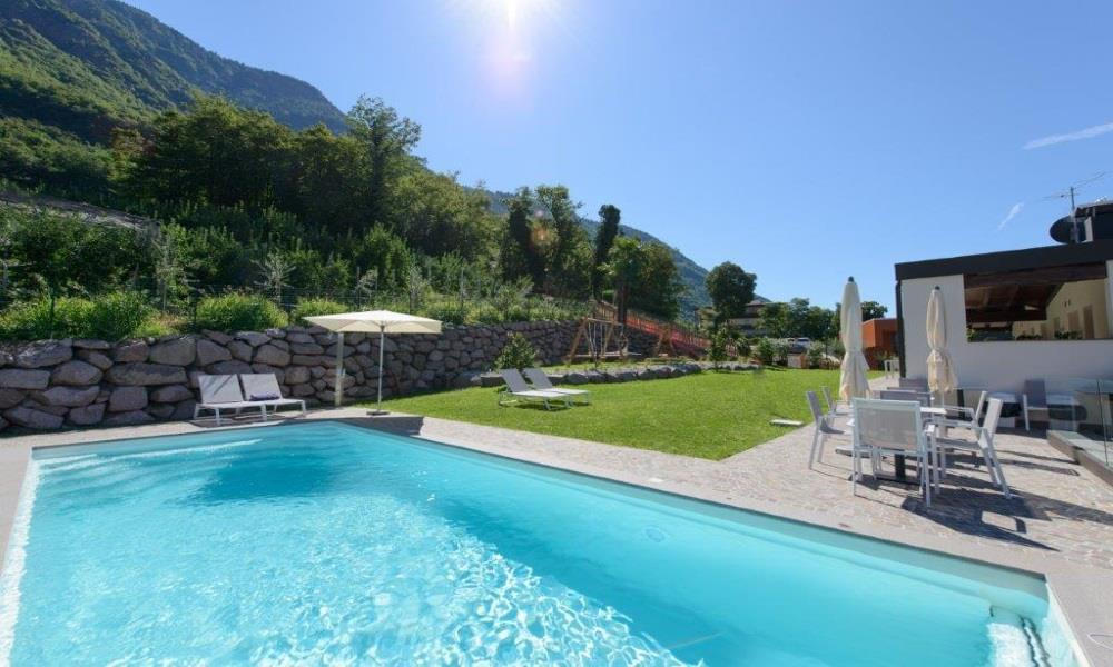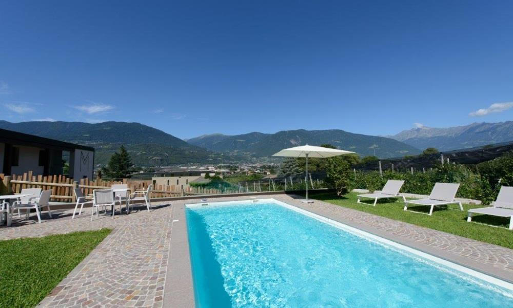 With a unique hillside location and wonderful panoramic views, the Moar Lodge in the village of Postal is surrounded by lush greenery. Vineyards and orchards are a treat for holidaymakers’ eyes, while the saltwater pool is perfect for relaxing and unwinding. The wonderful quiet location is a major advantage: cycle paths and walking trails run near the house and there are good public transport connections.