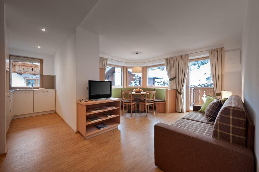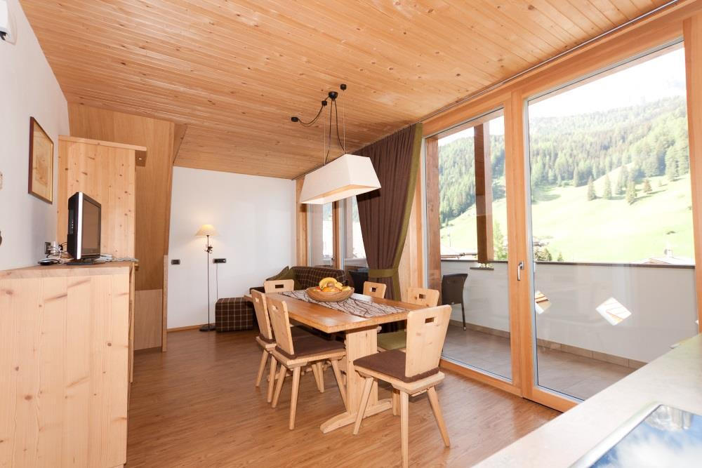 The Apartments Burvel are located in the midst of the Dolomites, a UNESCO world natural heritage site, in a particularly quiet and attractive situation in the heart of Selva. Summer and winter sports enthusiasts benefit from the closeness of the lift systems (the lift up to the Sella Ronda is just 150 metres away) and the numerous walking trails: the Langental Valley for instance is just ten minutes away. The sunbathing lawn offers guests a 360° view of the Sella massif and the tops of the Langkofel, Seceda and Stevia Alm.