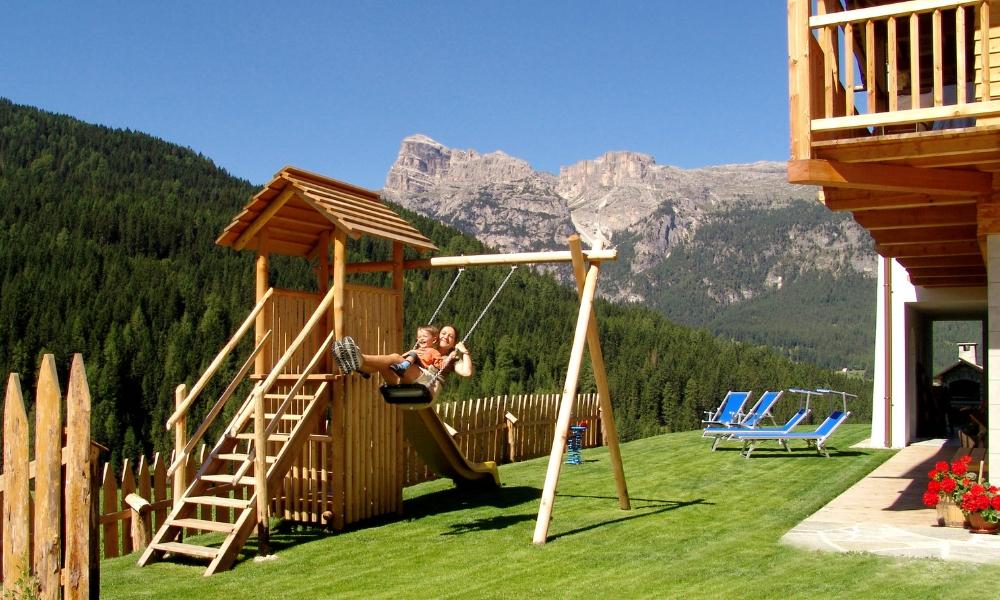 The Apartments Serghela enjoy a quiet and sunny location in San Cassiano in Alta Badia, surrounded by the green meadows of the hamlet known as Costadedoi. They make an ideal starting point for numerous hikes and mountain bike tours, with the village centre and lift facilities just 900 metres away. The large garden has sun loungers for relaxing, while there is also a play area and barbecue, a garage and parking spaces. All balconies are south-facing and offer magnificent views over the mountains –Heiligkreuzkofel, Lavarella, Conturines, Lagazuoi, Sassongher and Putia – all part of the Dolomites, a UNESCO World Heritage Site!