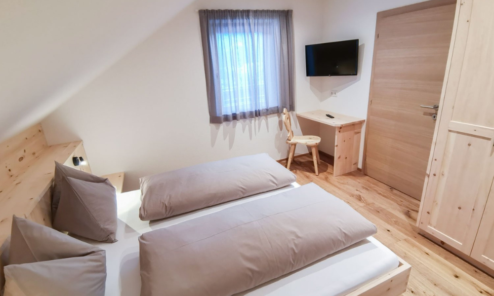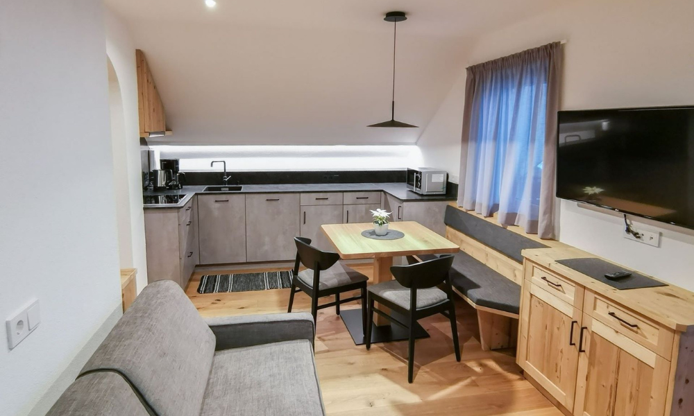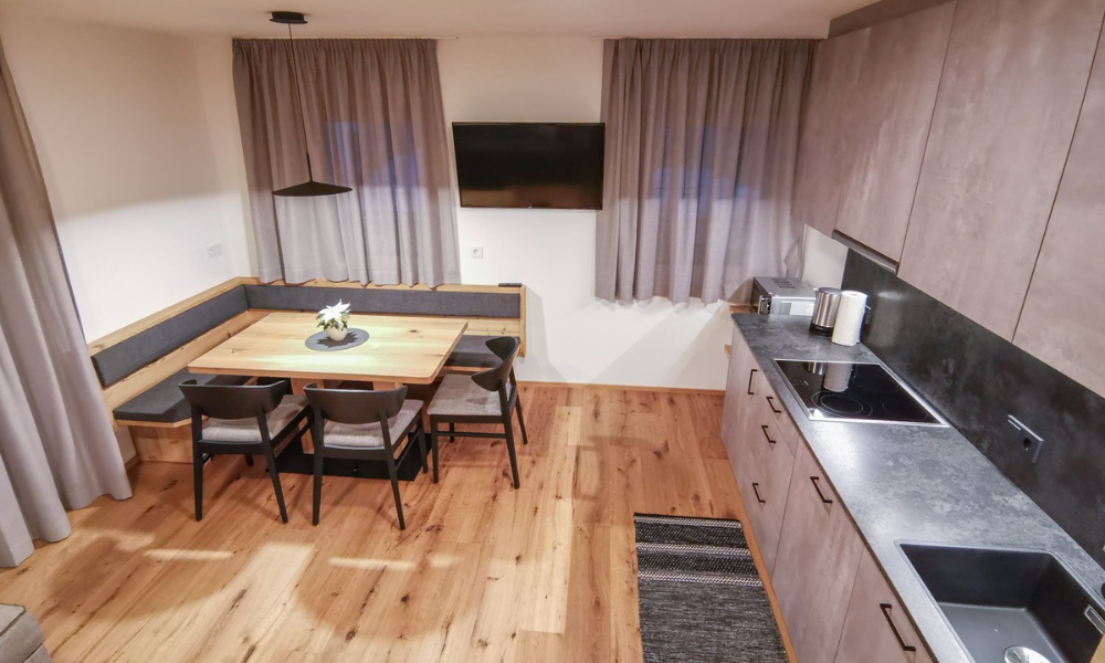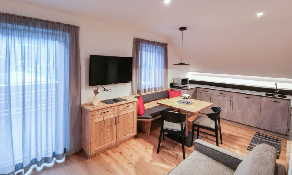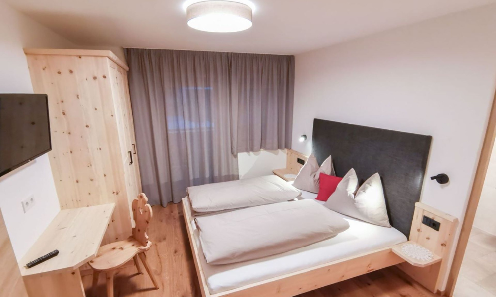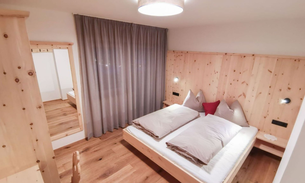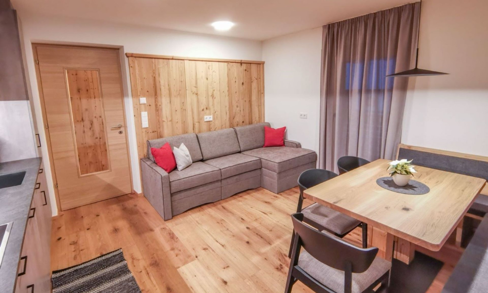 The Messna Apartments are located in Stefansdorf, part of the town of St. Lorenzen. Out front, the attractive garden with deckchairs, playground and barbecue facilities is ideal for relaxing. In summer it is possible to set off on leisurely walks or challenging mountain bike tours straight from the door – while in winter it is just one kilometre to the Kronplatz ski area (or a short ride on the free ski bus), where fast downhill runs, cross-country trails and snowshoe excursions are the order of the day. What’s more, the fully equipped Messna Apartments, furnished in Alpine style using plenty of local wood, offer holidays with fantastic views of the Dolomite mountains!