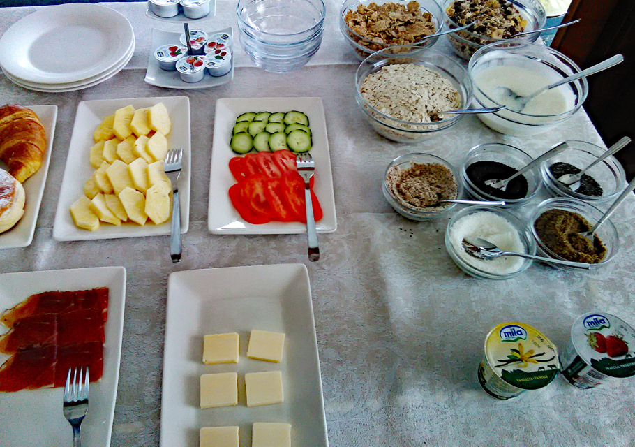 I, for one, would like to spend a loooong holiday here after the small, but select breakfast buffet of chia and flea seeds, yoghurt, cheese from the neighbouring dairy and pineapple. For the concept of Land Palais is one of a palace in the country. Healthy, fit and simply majestic!
