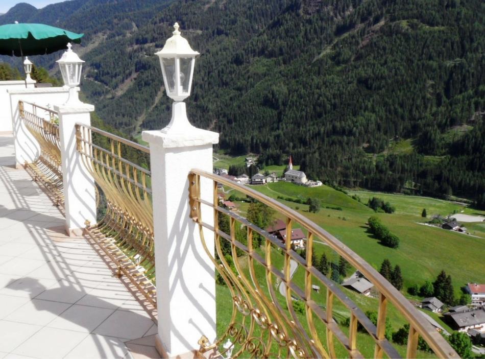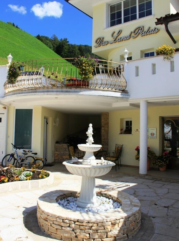 First of all, we are treated to a short tour, which shows us what Land Palais well has gained its five suns for: fine details, elegant furnishings, lots of light and every comfort catered for. Our room welcomes us with a royal blue four-poster bed. A mirror framed in porcelain hangs in the bathroom and the private terrace looks like a panorama platform with views of the high mountains, a roaring stream beneath, and the little village of Mühlwald at the foot of the slope. Rural luxury at its best, in every corner of the house. The Plaickners are clearly concerned that their guests should have an elegant holiday. The contrast between the family atmosphere and the crystal chandeliers is a winning combination. The wellness area is no less impressive: a Greek palace – with fitness room, sauna, steam bath and counter-current system. Soft music and a glass facade allowing access to outside and a small sunbathing lawn. I can hardly wait to dive into the dark blue waters of the pool...