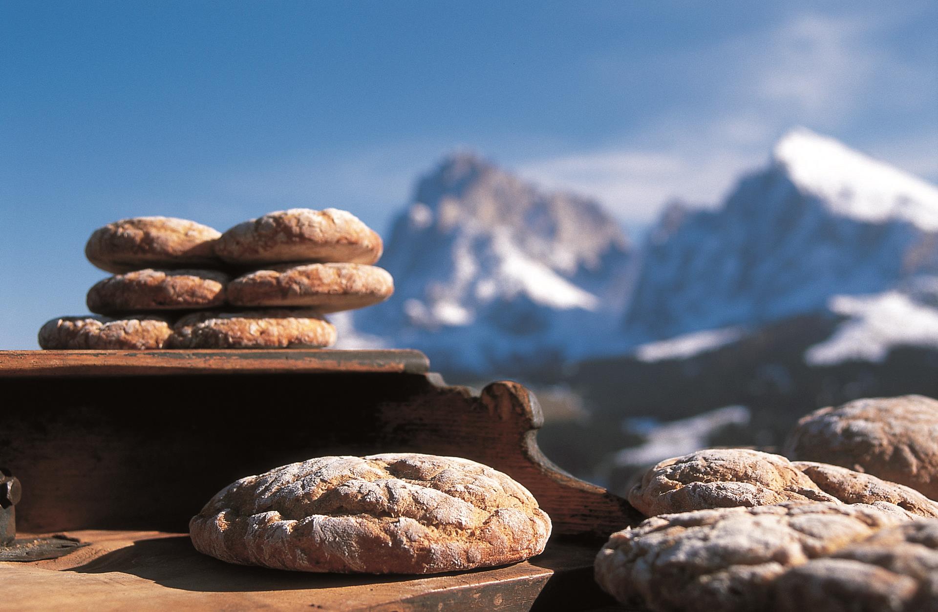 What could you prepare with a “Vinschgerle”? It surely is an unmissable element of the South Tyrolean Marende (afternoon snack). Finely sliced, it’s the perfect base for herb cream cheese, smoked sausages, and bacon or - for those who like it sweet - for butter and jam.