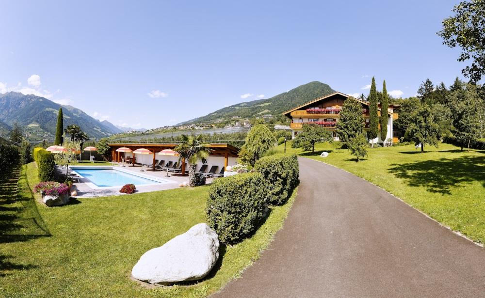 Immerso nel soleggiato panorama dell’elegante quartiere residenziale di Merano Maia Alta e attorniato da frutteti e vigneti sorge il Neuhäuslhof. Il giardino curato con una piscina all’aperto riscaldata ad energia solare e un accogliente prato, dove godere del tepore dei raggi del sole, accompagnano gli ospiti in un mondo fatato con vista sul Gruppo di Tessa e sui paesini di Scena e Tirolo ...