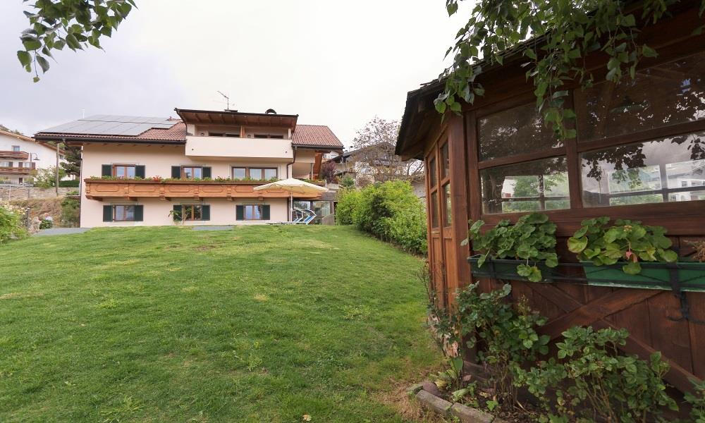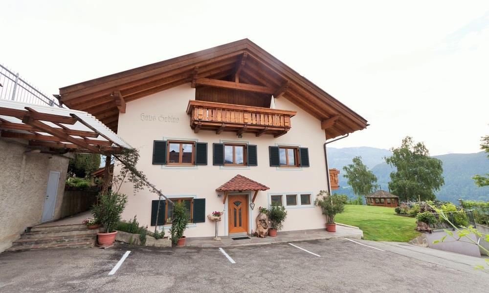 Casa Sabine si trova nella parte sud di Laion, vicinissima al centro con ristorante, negozi e bar. Il grande giardino è una vera oasi di relax con sdraio, un padiglione e un accogliente angolino per sedersi. La vista è straordinaria, si può ammirare la Val d'Isarco, il Renon, la Val Gardena fino a Santner, Sciliar e il Gruppo del Sella.
