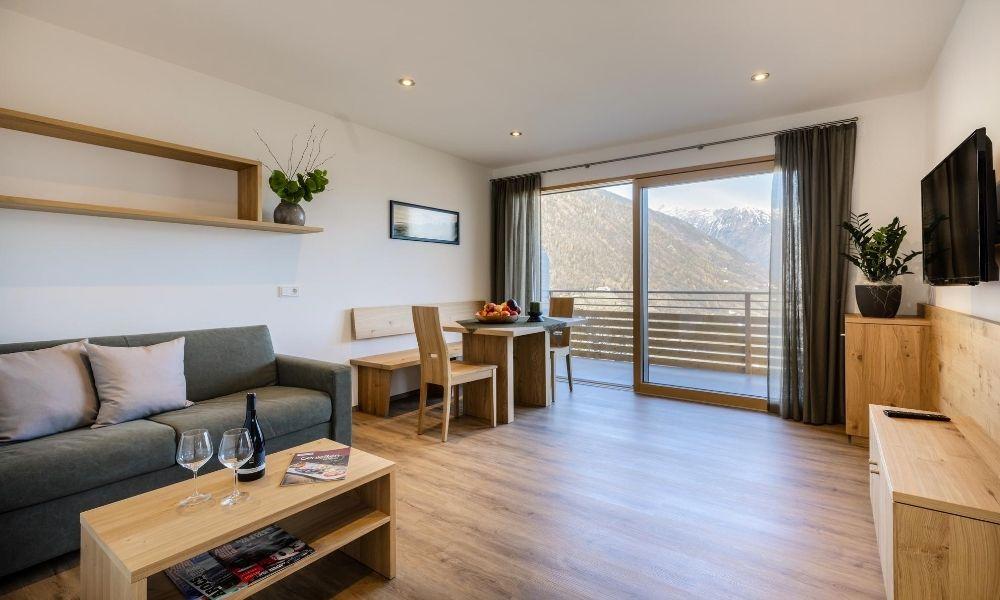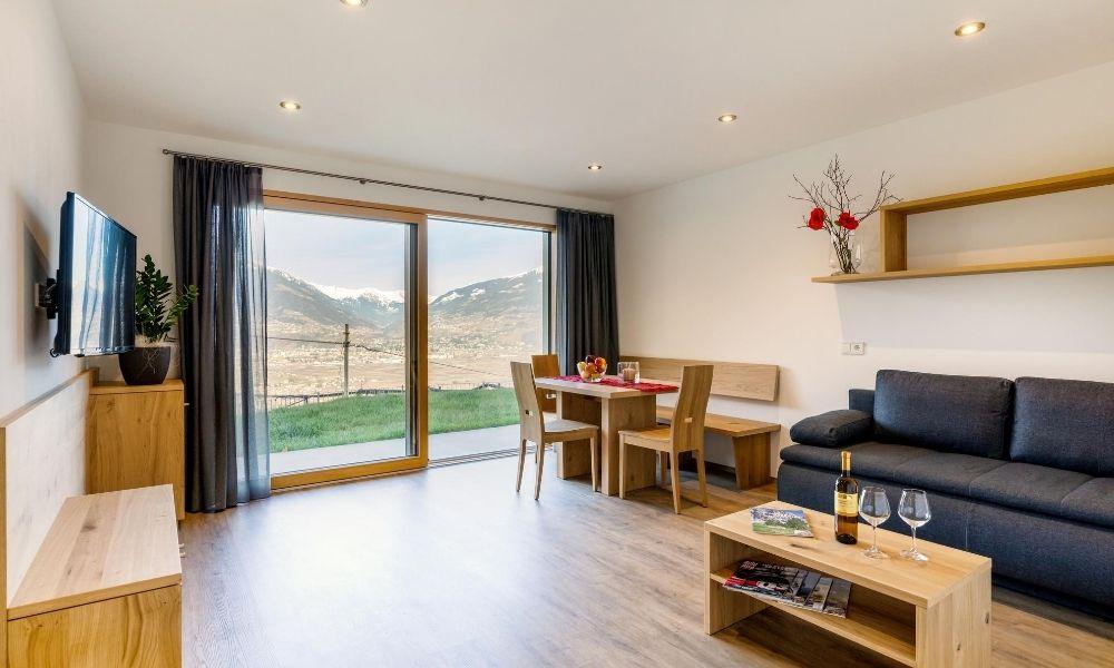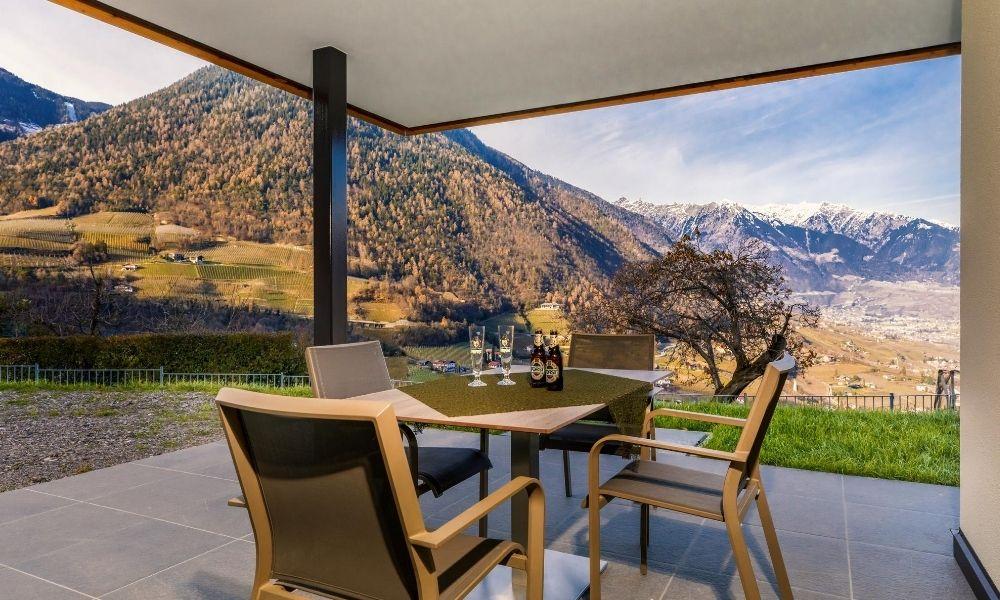 I nuovi appartamenti vacanze Jaufenblick vi aspettano a 500 metri di quota nel paesino di Lana, vicino a Merano e alla stazione climatica di Foiana. Il residence dista pochi minuti dal centro del paese ed è raggiungibile percorrendo lo storico Vicolo Foiana. Dalle ampie terrazze lo sguardo si posa sull’incantevole panorama delle montagne dell’Alto Adige. La vista spazia fino a Merano e Bolzano, abbracciando il Monte Ivigna, il Cervina e parte del Gruppo di Tessa. Gli appartamenti al pianterreno sono dotati di un giardino privato, mentre il residence dispone di un prato sul quale rilassarsi e distendersi al sole. Il garage offre parcheggio per tutti gli ospiti, mentre per le biciclette è a disposizione un deposito con serratura.