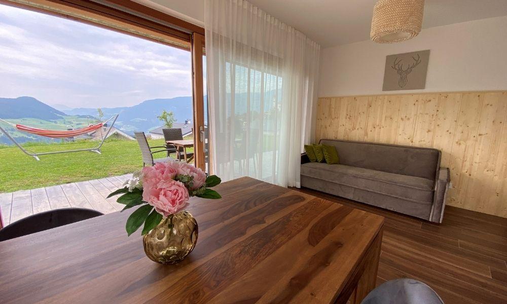 Il nuovo Alpine Chalet Aurora Dolomites con i suoi arredi di stile e il design elegante, sorge nel paesino di montagna di Laion, in una posizione silenziosa e soleggiata. Gli appartamenti vacanza sono situati in prossimità di ampie distese di prati e di sentieri escursionistici, dai quali ammirare la natura della Valle Isarco e della Val Gardena. A pochi passi si trovano anche la fermata dell’autobus, gli impianti sportivi e il parco giochi. Il centro di Laion, dove gli ospiti possono sedersi ai tavoli dei ristoranti e dei bar, fare shopping nei negozi e respirare la cultura locale, dista appena 300 metri. L’Alpine Chalet Aurora Dolomites è dotato di un ampio giardino terrazzato con comode sdraio sulle quali distendersi al sole, di un barbecue, di una zona picnic all’aperto e di tanti giochi per bambini.