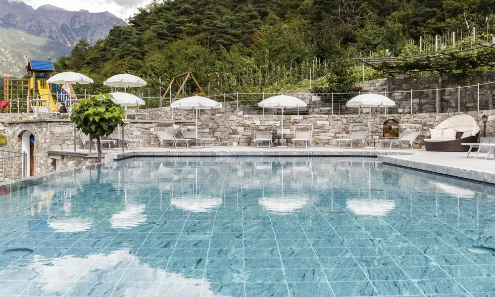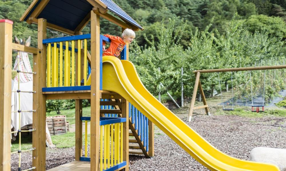 A Ried, una frazione di Lagundo, si trova al bordo del bosco, tra coltivazioni di alberi da frutto, Casa Palus. Per arrivare al paese più vicino si percorrono 1,5 km, tuttavia qui non manca proprio nulla: un prato dove distendersi al sole con un'ampia piscina assicurano il riposo desiderato e i bambini si sentono subito a loro agio nel parco giochi a loro dedicato. Accanto alla casa prospera florido un giardino di alberi da frutto e un orticello e ogni appartamento dispone di una terrazza privata con vista sulla valle, sul Gruppo di Tessa e sulle distese di meleti.
