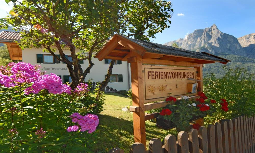 Casa Waldrand si trova nell'area vacanze Alpe di Siusi – Val Gardena, poco fuori i due paesi di Castelrotto e Siusi. La casa dispone di un grande prato fatto apposta per sdraiarsi e prendere il sole, confinante con il bosco. Ci sono infinite opzioni per un'escursione nella zona. Anche restando a casa si gode un panorama magnifico sulle Dolomiti con lo Sciliar quale protagonista, sulla conca di Bolzano e sul Renon, sul lato opposto della Valle Isarco.
