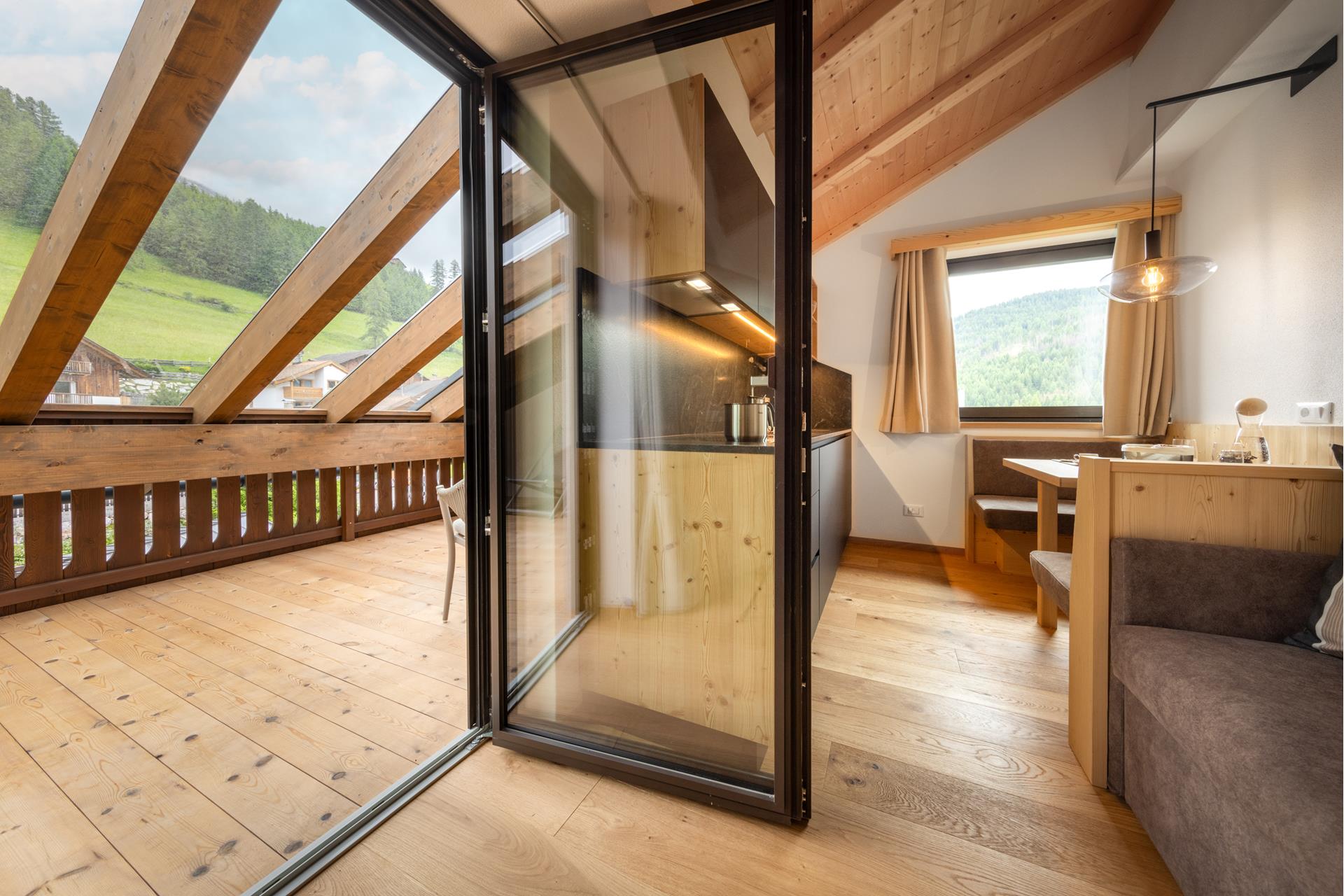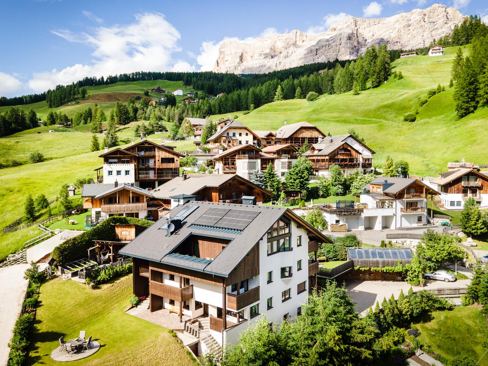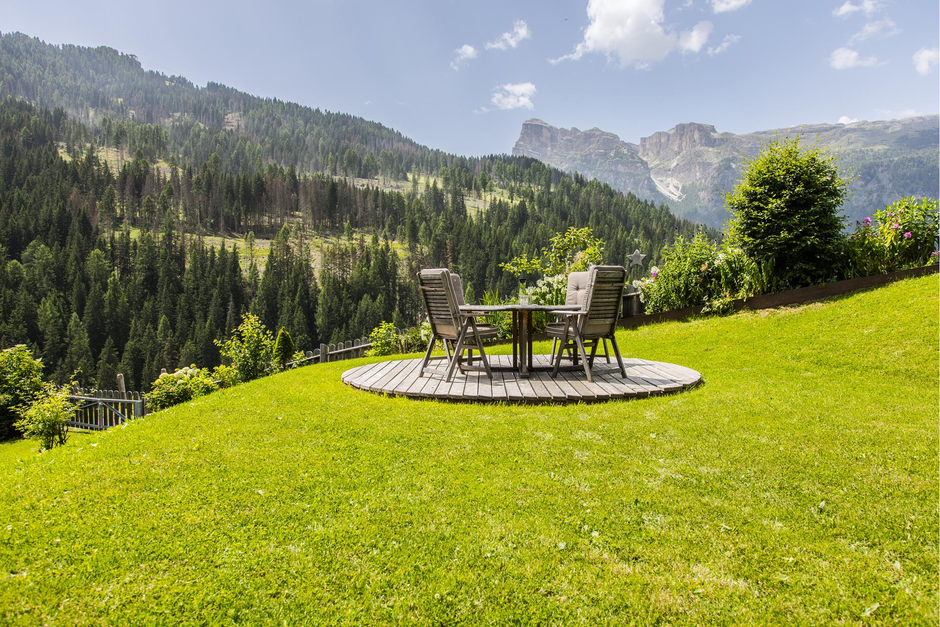 Ognuno degli appartamenti vacanze ha un prato privato per prendere il sole e un posteggio, per avere tutti i comfort. Sia in estate che in inverno questi luoghi sono ottimi per rilassarsi dopo un'intensa giornata di vacanza. Per sci e scarponi c'è una stanza apposita. Pic nic sui grandi prati ad alta quota, arrampicare o visitare un maso: in Val Badia si possono vivere mille avventure.