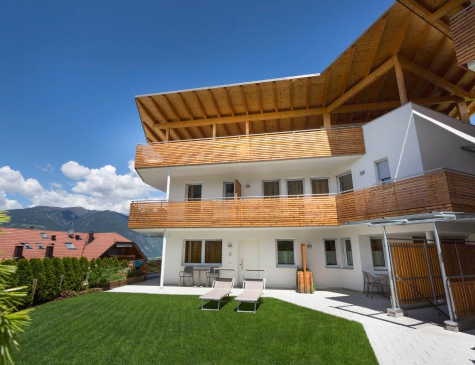 Dal 2011, durante tutto l’anno, Andreas Oberpertinger e sua moglie Astrid affittano i quattro appartamenti che possono ospitare rispettivamente dalle 4 alle 5 persone. Dopo aver visto il primo appartamento, devo ammettere di essermi incuriosita e non vedo l’ora di dare un’occhiata anche agli altri tre. :) Tre alloggi dispongono di una terrazza, dall’appartamento al piano terra, invece, si ha accesso diretto al giardino. Gli appartamenti della CasaClima categoria A sono spaziosi e luminosi, dispongono di una cucina completamente attrezzata, di un impianto di ventilazione e di un riscaldamento a pavimento.