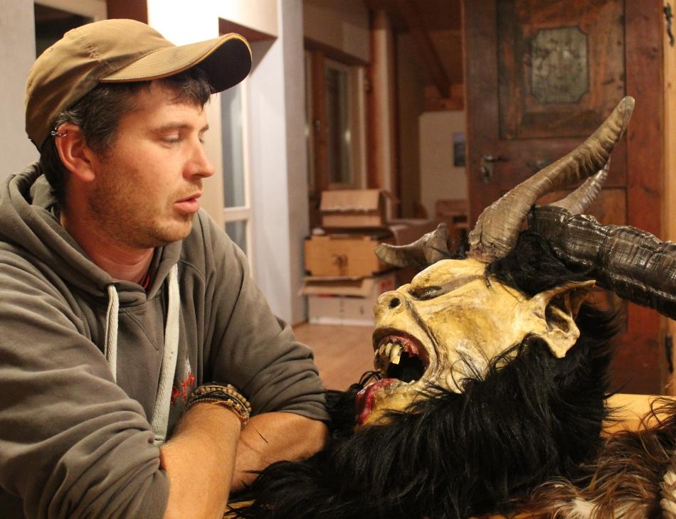 Una sera di ottobre ho incontrato il trentunenne per una chiacchierata presso l’azienda di costruzione tetti per la quale lavora e dove, quando non indossa la maschera da Krampus, trascorre la maggior parte del suo tempo.