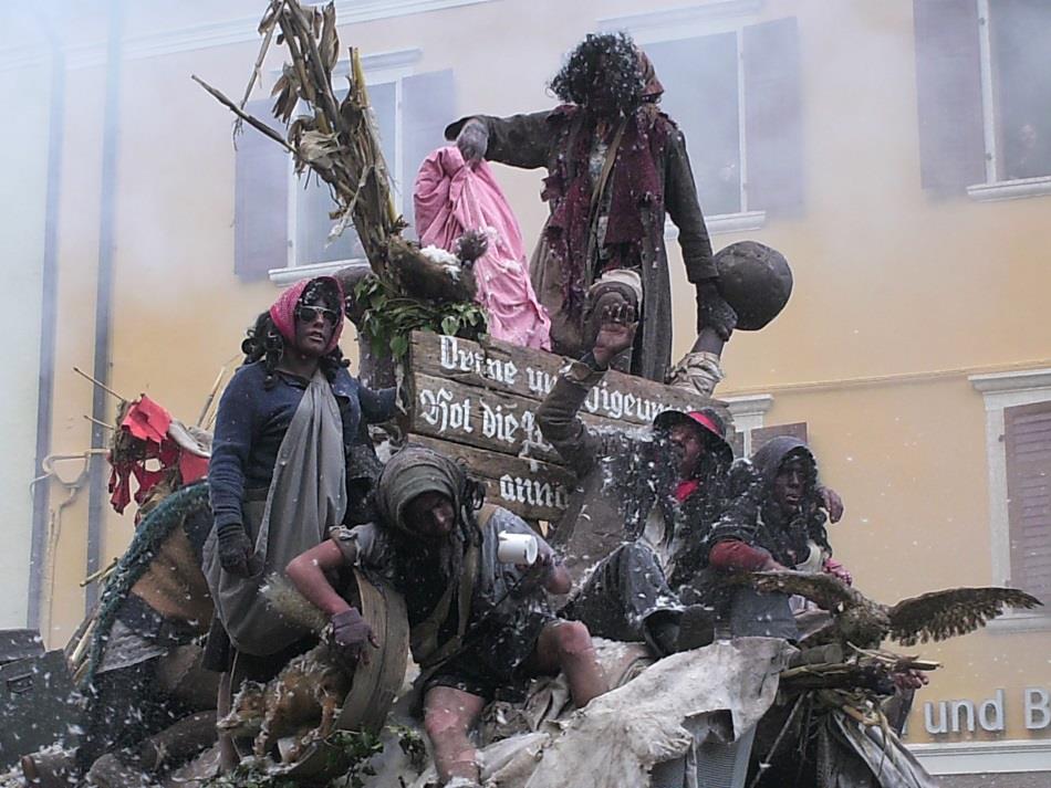 Inoltre dovete sapere che durante la sfilata dell’Egetmann gli abitanti di Termeno amano gettare sulla folla fuliggine, polvere, segatura e pesce non proprio fresco. Perciò non agghindatevi troppo!